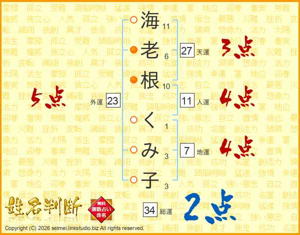 海老根くみ子さんの総運は34画の2点!