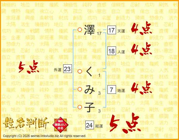 澤くみ子さんの総運は24画の5点!