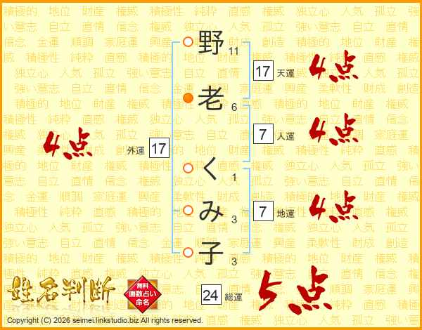 野老くみ子さんの総運は24画の5点!