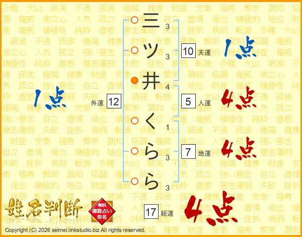 三ツ井くららさんの総運は17画の4点!