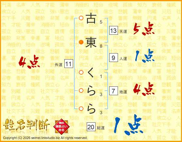 古東くららさんの総運は20画の1点!
