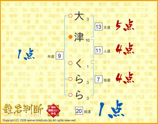 大津くららさんの地運は7画の4点!