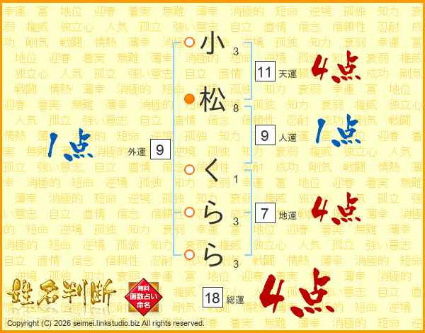 小松くららさんの総運は18画の4点!