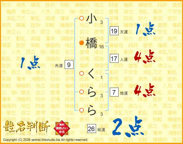 小橋くららさんの総運は26画の2点!