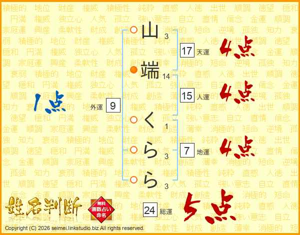 山端くららさんの天運は17画の4点!