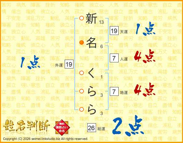 新名くららさんの総運は26画の2点!