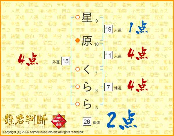 星(9画)原(10画) く(1画)ら(3画)ら(3画)