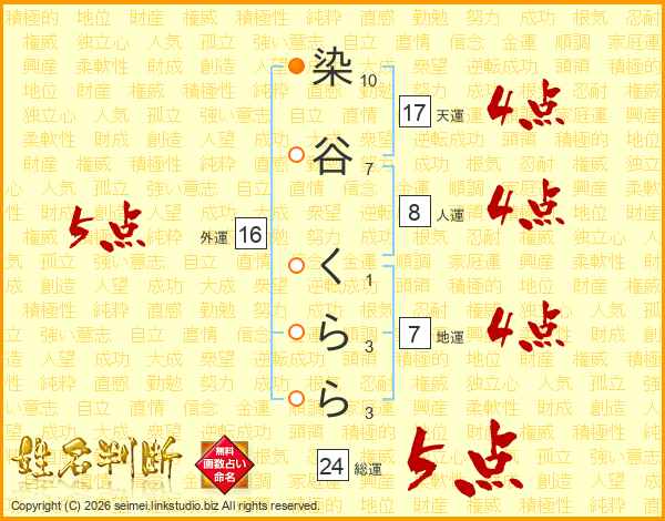 染谷くららさんの天運は17画の4点!