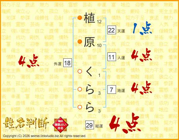 植原くららさんの外運は18画の4点!