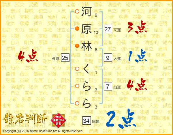 河(9画)原(10画)林(8画) く(1画)ら(3画)ら(3画)