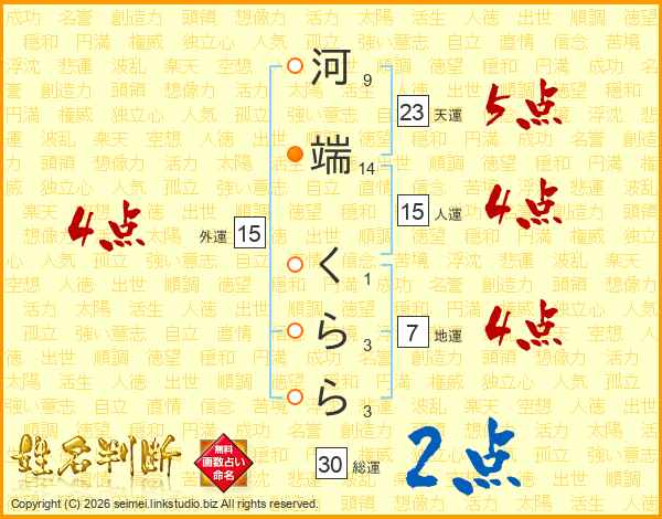 河端くららさんの総運は30画の2点!