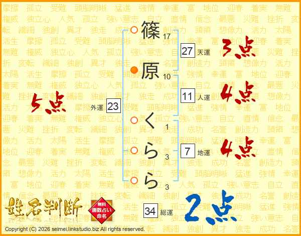 篠(17画)原(10画) く(1画)ら(3画)ら(3画)
