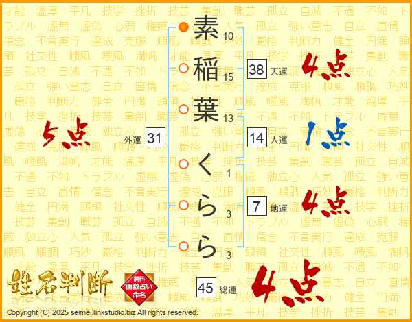 素稲葉くららさんの総運は45画の4点!