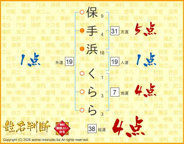 保(9画)手(4画)浜(18画) く(1画)ら(3画)ら(3画)
