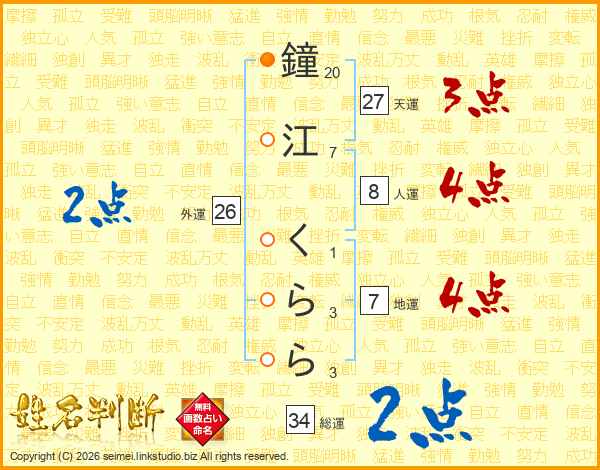 鐘江くららさんの天運は27画の3点!