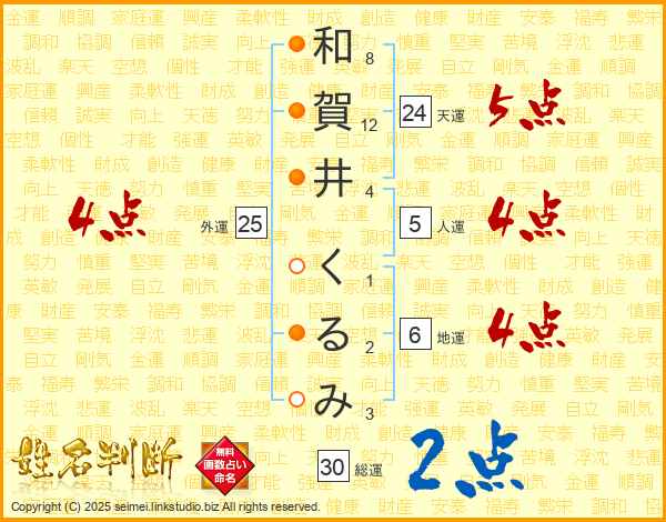 和賀井くるみさんの総運は30画の2点!