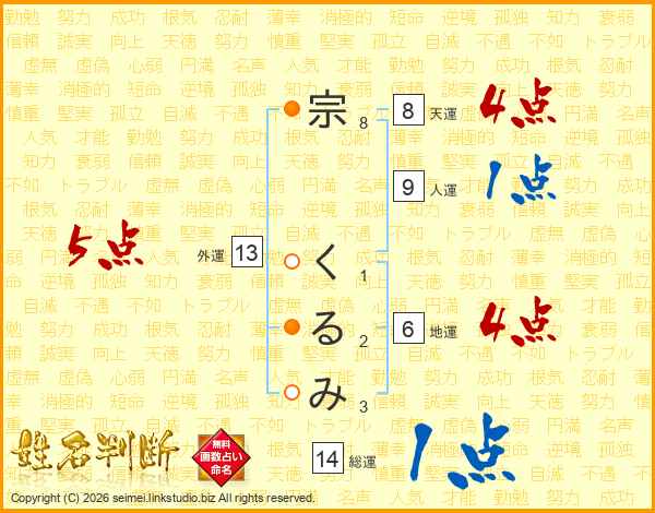 宗くるみさんの総運は14画の1点!