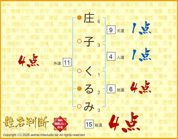 庄子くるみさんの総運は15画の4点!