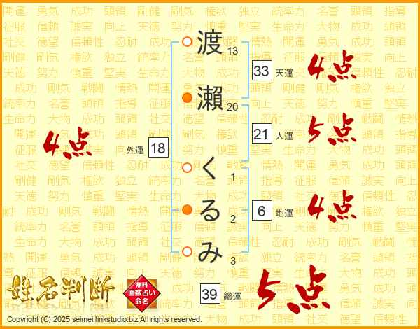 渡(13画)瀨(20画) く(1画)る(2画)み(3画)