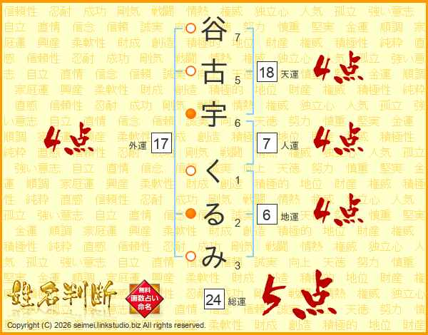 谷古宇くるみさんの外運は17画の4点!
