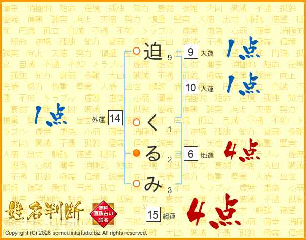迫(9画) く(1画)る(2画)み(3画)