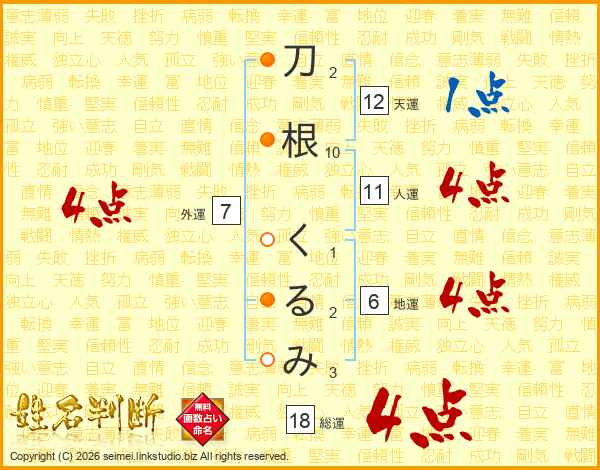 刀根くるみさんの外運は7画の4点!