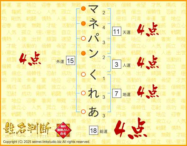 マネパンくれあさんの総運は18画の4点!