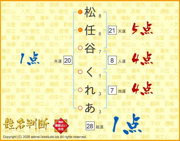 松任谷くれあさんの総運は28画の1点!