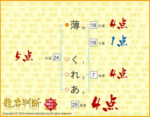 薄くれあさんの総運は25画の4点!