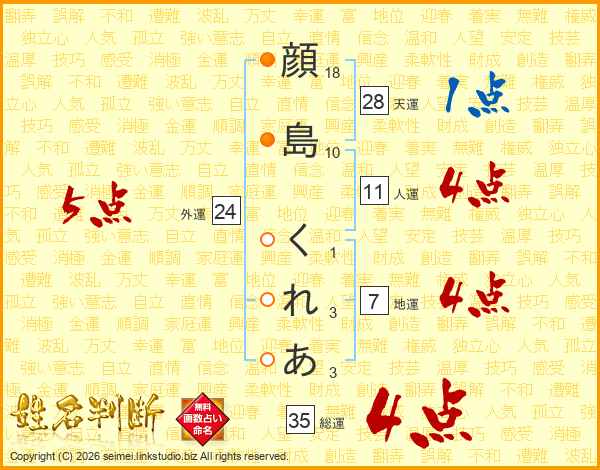 顔島くれあさんの総運は35画の4点!