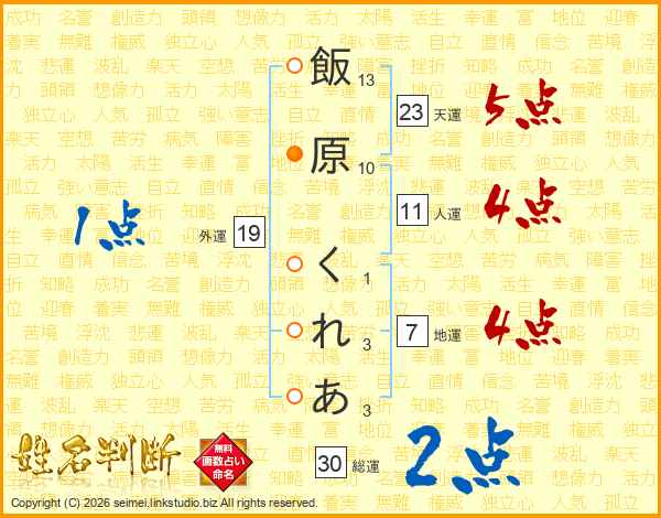 飯原くれあさんの天運は23画の5点!