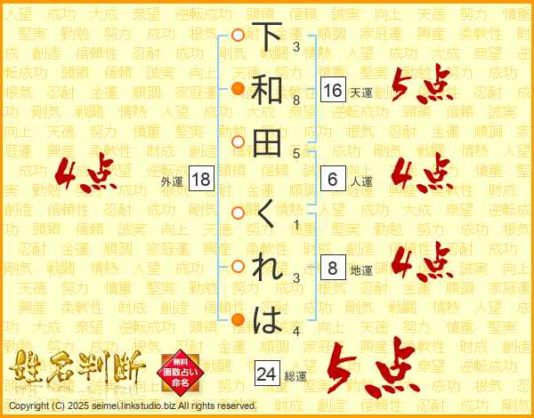 下和田くれはさんの外運は18画の4点!