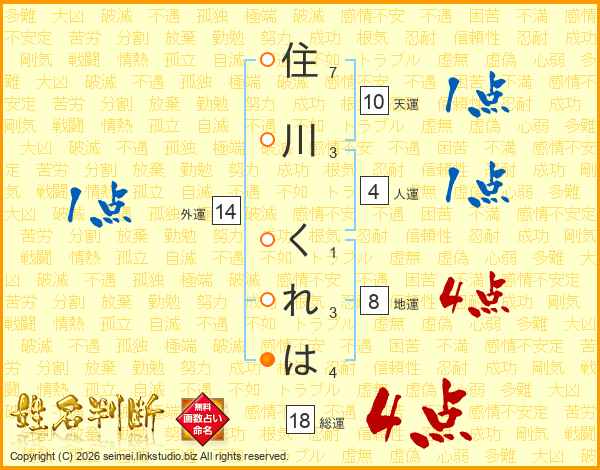 住川くれはさんの総運は18画の4点!