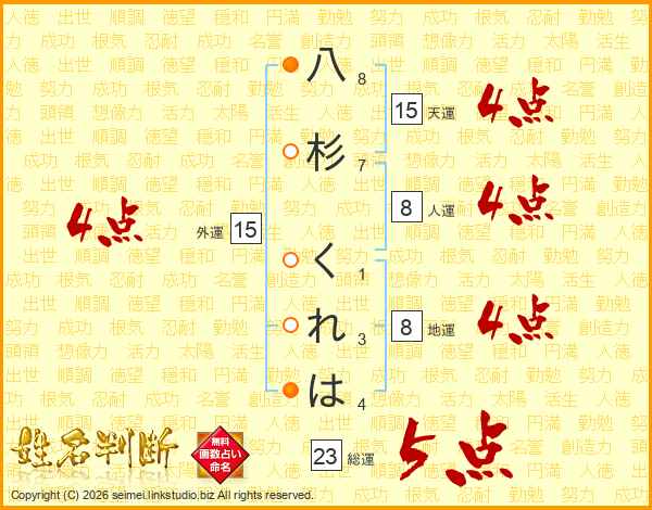 八杉くれはさんの総運は23画の5点!