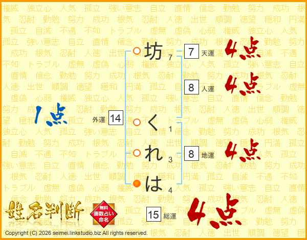 坊くれはさんの総運は15画の4点!
