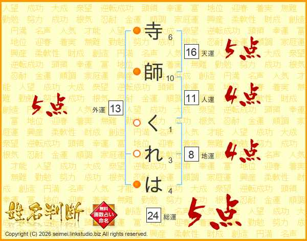 寺師くれはさんの総運は24画の5点!