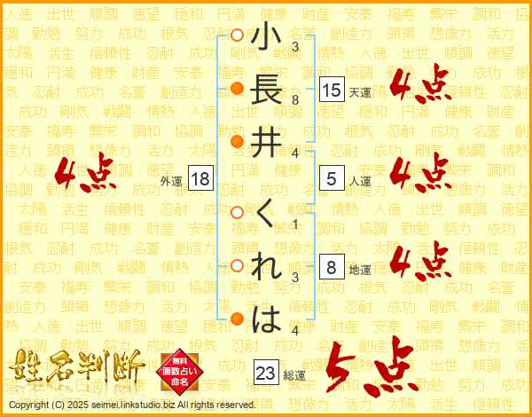 小長井くれはさんの外運は18画の4点!