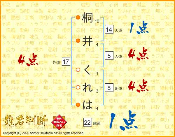 桐井くれはさんの総運は22画の1点!