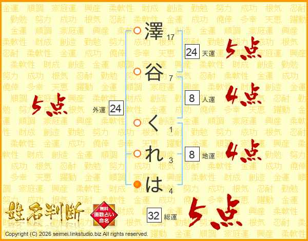澤谷くれはさんの外運は24画の5点!