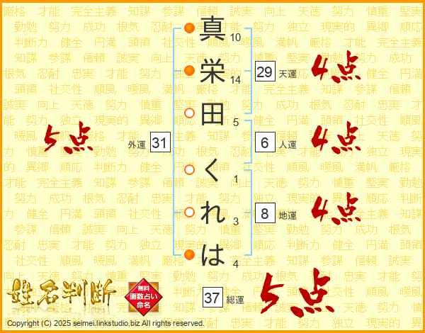 真栄田くれはさんの総運は37画の5点!