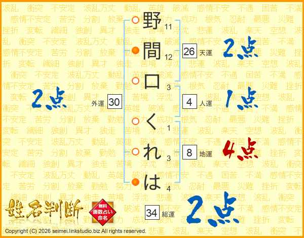野間口くれはさんの総運は34画の2点!