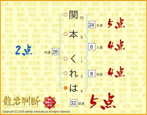 関本くれはさんの総運は32画の5点!
