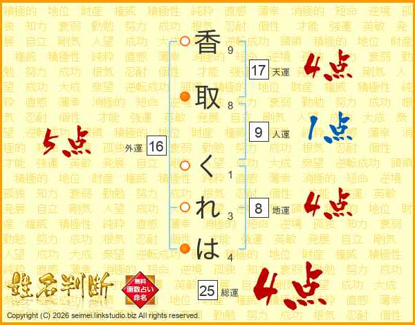 香取くれはさんの総運は25画の4点!