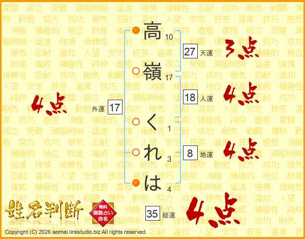 高嶺くれはさんの外運は17画の4点!