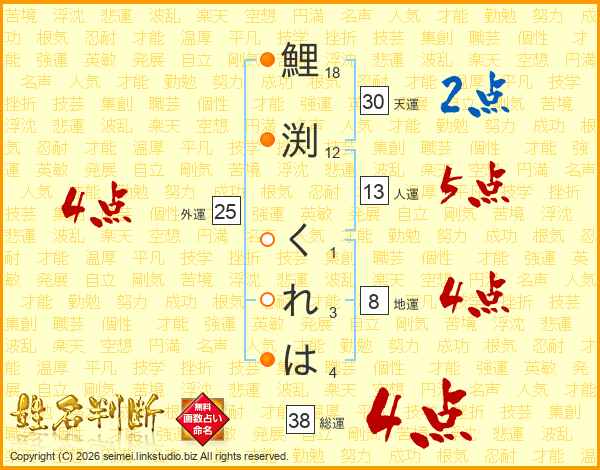 鯉渕くれはさんの総運は38画の4点!