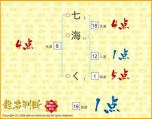 七海くさんの天運は18画の4点!