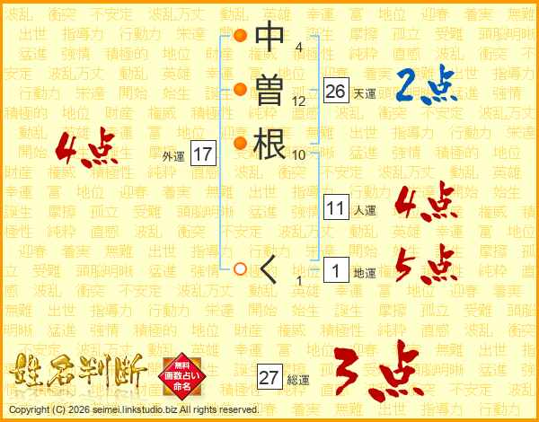 中曽根くさんの天運は26画の2点!