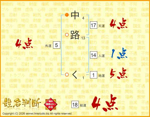中路くさんの総運は18画の4点