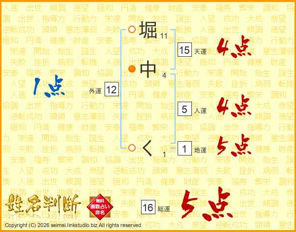 堀中くさんの総運は16画の5点