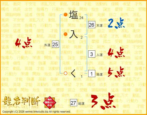 塩入くさんの総運は27画の3点
